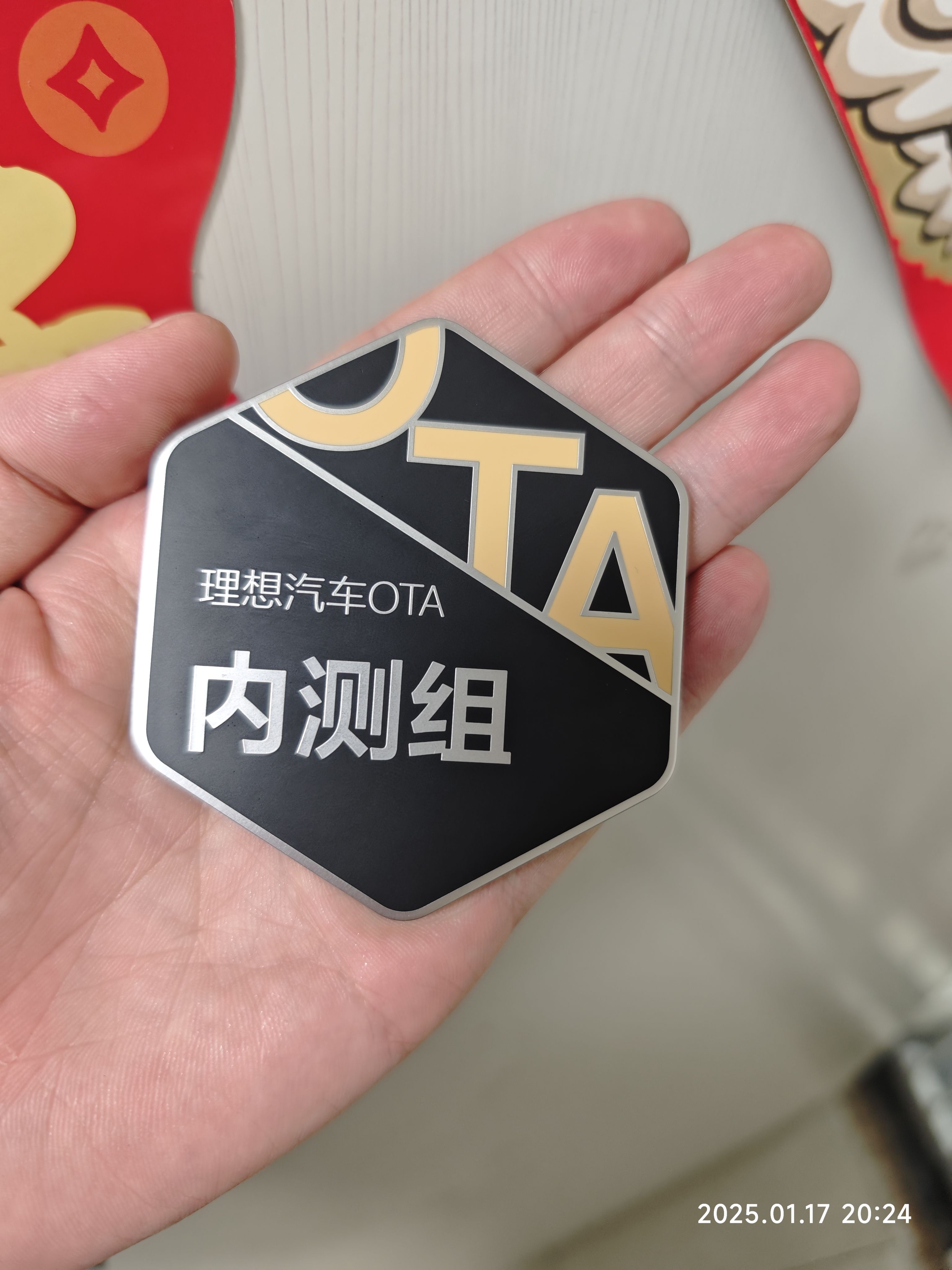 理想汽车OTA内测圈子小礼物🎁,挺有质感的一个磁吸徽章。